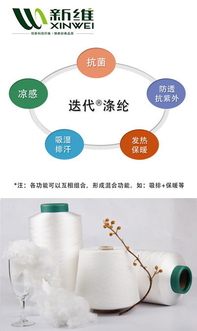 以迭代®滌綸為原料,在其親水舒適、低溫環(huán)保的特性基礎(chǔ)上,還可以附加抗菌等系列功能性,進(jìn)而形成一系列性能迭代®滌綸。